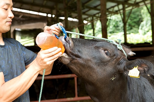 山間の牛舎で育てた